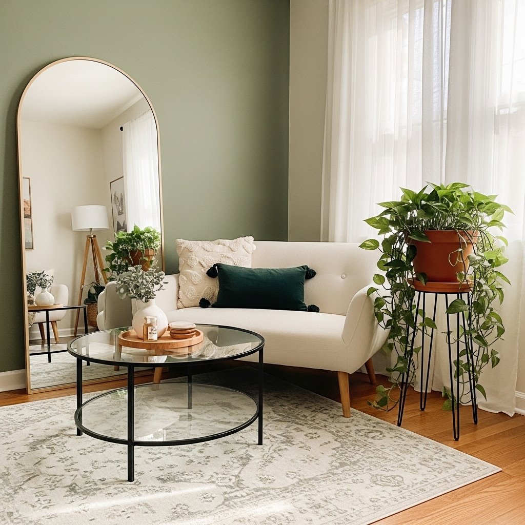 This is the number one tiny living room trick — and it works every single time. A large mirror, or a gallery wall of mirrors, reflects light, creates the illusion of depth, and makes your small space feel like it goes on forever. Lean a full-length mirror against a wall, or hang an oversized framed mirror directly across from your main window for maximum light reflection.