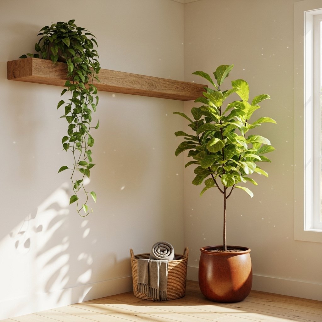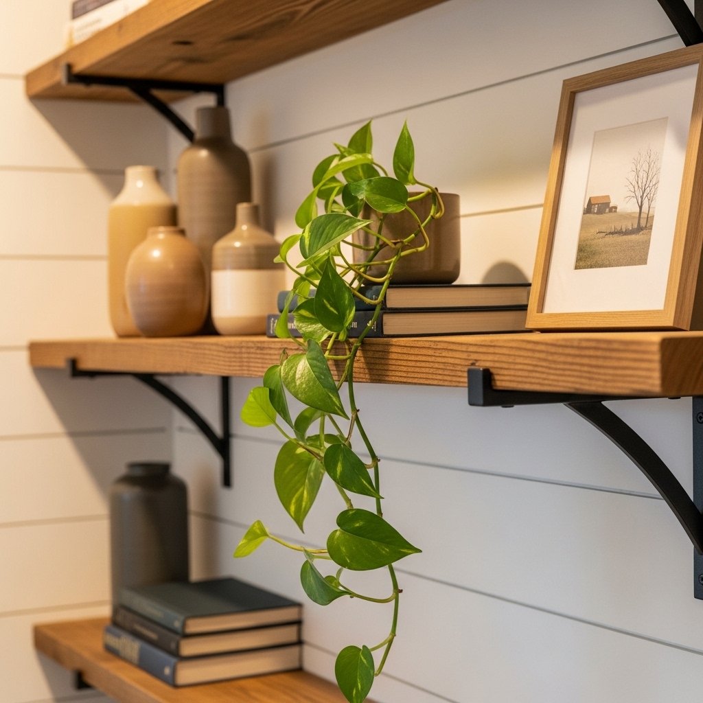 Plants are essential to the modern farmhouse look. They introduce organic texture, living color, and a sense of life that no decor object can replicate. Opt for easy-care varieties: pothos, fiddle-leaf figs, snake plants, trailing ivy, and small succulents all work beautifully.