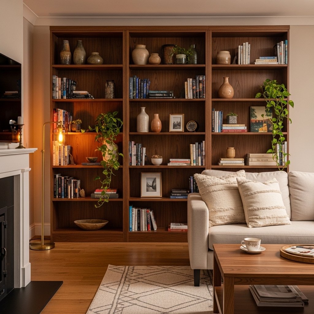 Built-in bookshelves or a large freestanding bookcase are a signature element of classic luxury living rooms. But the way you style them is what separates an elegant library wall from a cluttered storage unit.