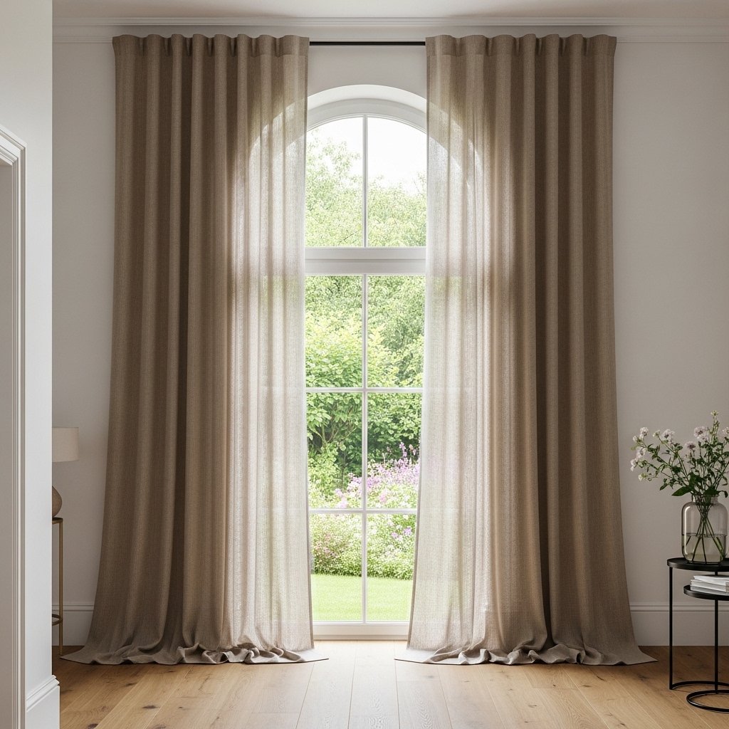 Curtains that hang from just above the window frame to just below the sill are one of the most common mistakes in home decor. In luxury interior design, curtains are always hung high — as close to the ceiling as possible — and fall all the way to the floor.