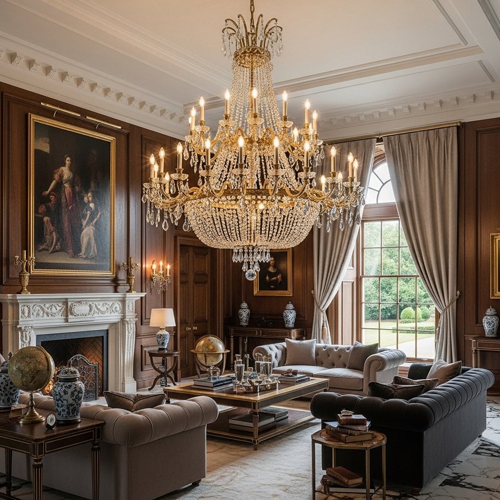In a luxury living room, the overhead light fixture is not just a light source — it is a piece of art. A dramatic chandelier, an oversized drum pendant, or a sculptural pendant light draws the eye upward and adds instant architectural drama.