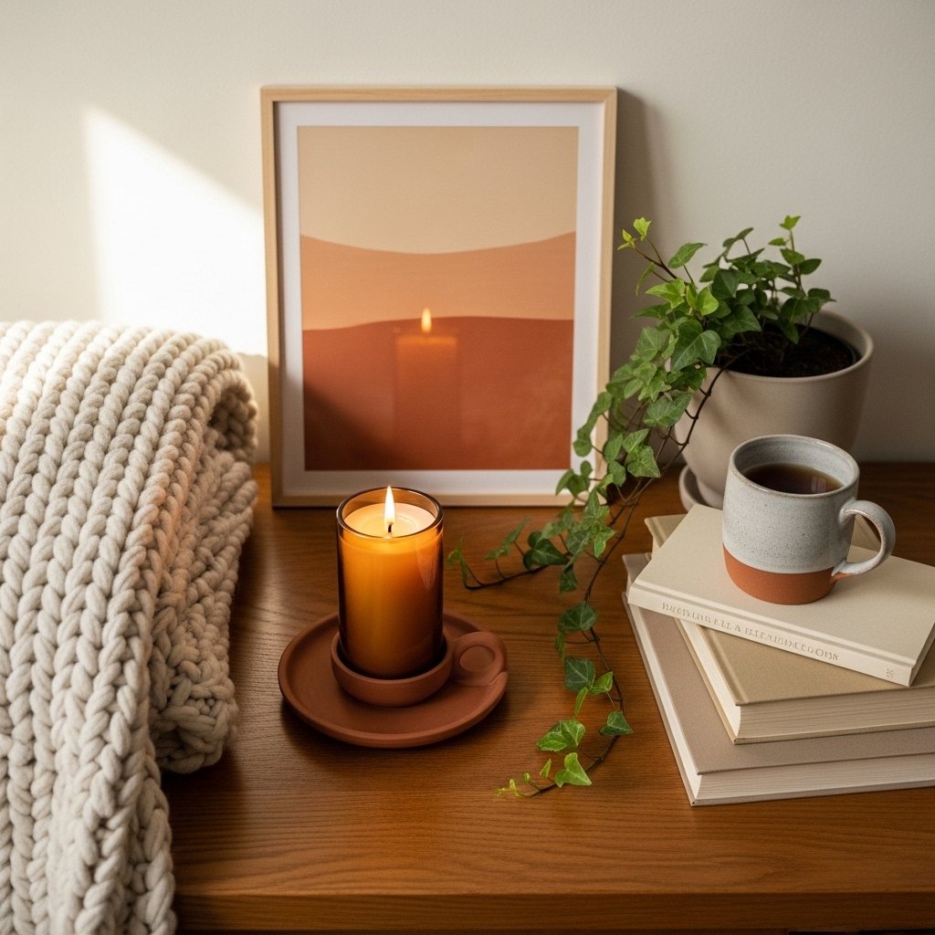 Candles are the single most powerful cozy tool available — and they cost almost nothing. Group candles of different heights on a tray on your coffee table. Place a single large candle on the mantel. Put a small votive on a side table beside the sofa. When your living room is lit by a combination of lamp light and candlelight, it enters a different dimension of cozy entirely. Light everything at 5pm and notice the shift.