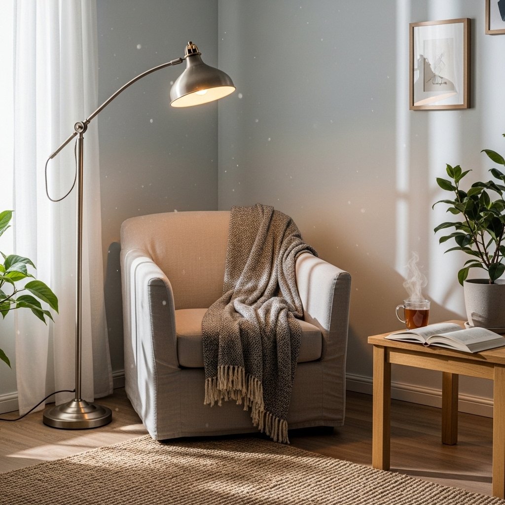 A reading nook — a single chair positioned near a light source with a floor lamp, a small side table, and a plant — is one of the most emotionally resonant small space interventions possible. It creates a sense of purpose and intentionality in a corner that might otherwise accumulate clutter. It also photographs beautifully for social content.