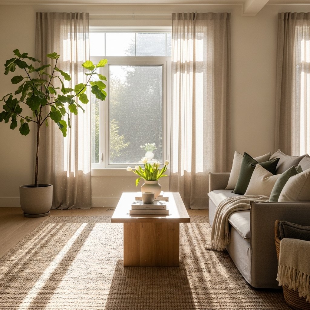 Heavy blackout or velvet curtains absorb light and visually compress a room. Sheer linen or cotton voile panels in ivory, warm white, or soft sand allow natural light to diffuse beautifully throughout the space. This single change can make a small living room feel up to 40% more open and airy — without touching a single piece of furniture.Pro tip: Floor-length sheers hung close to the ceiling create the illusion of taller ceilings.