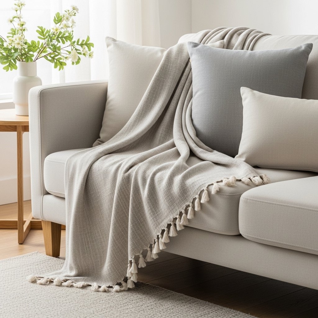 The single most impactful spring decor action you can take today is removing all winter textiles and replacing them with spring equivalents. Exchange chunky knit throws for lightweight cotton weave or linen throws. Replace heavy velvet cushion covers with linen or cotton slub alternatives. This rotation alone can transform the entire feeling of a room in under thirty minutes.