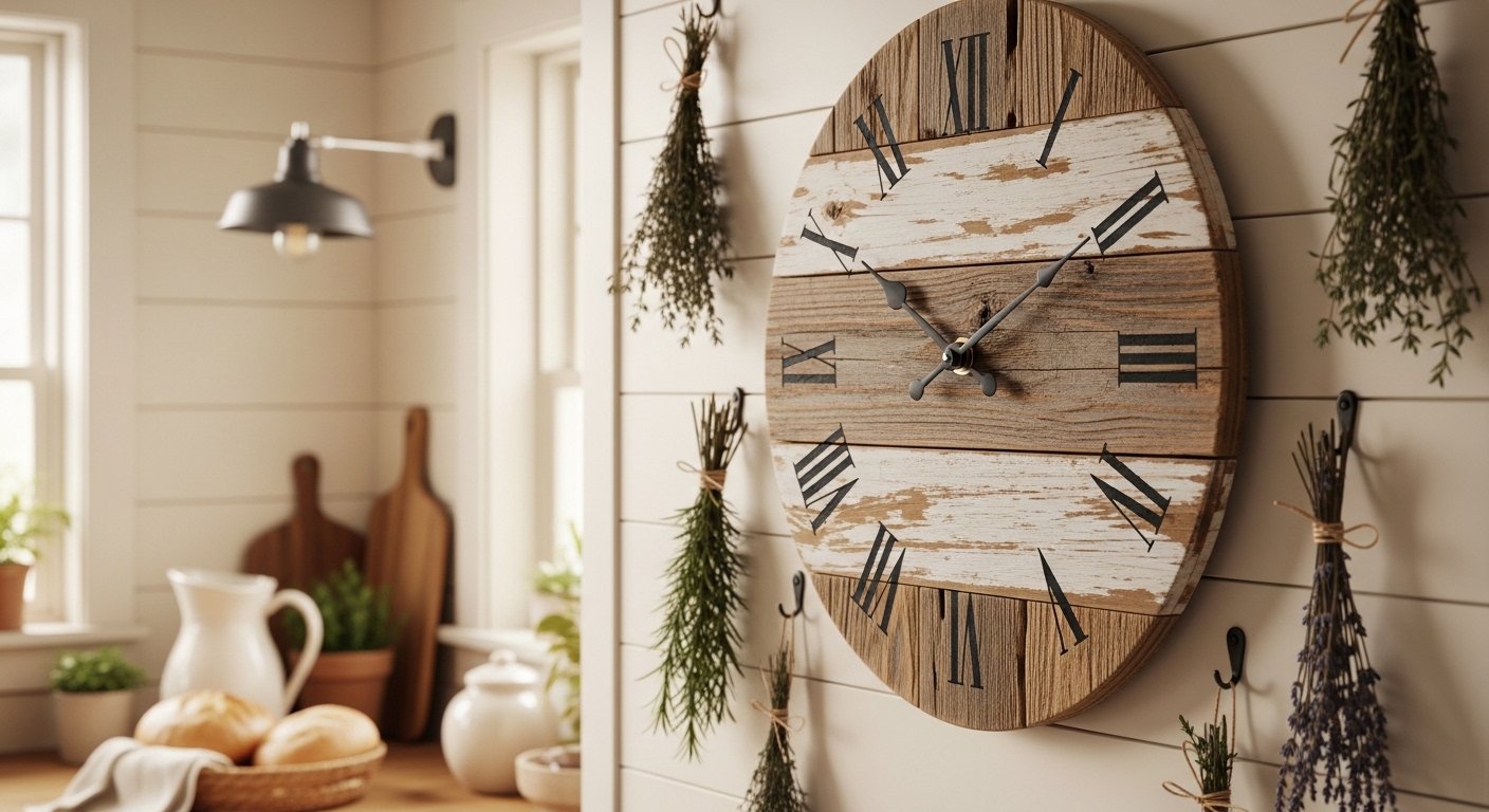 8. Rustic Wood Wall Clock — Farmhouse Warmth at Its Best