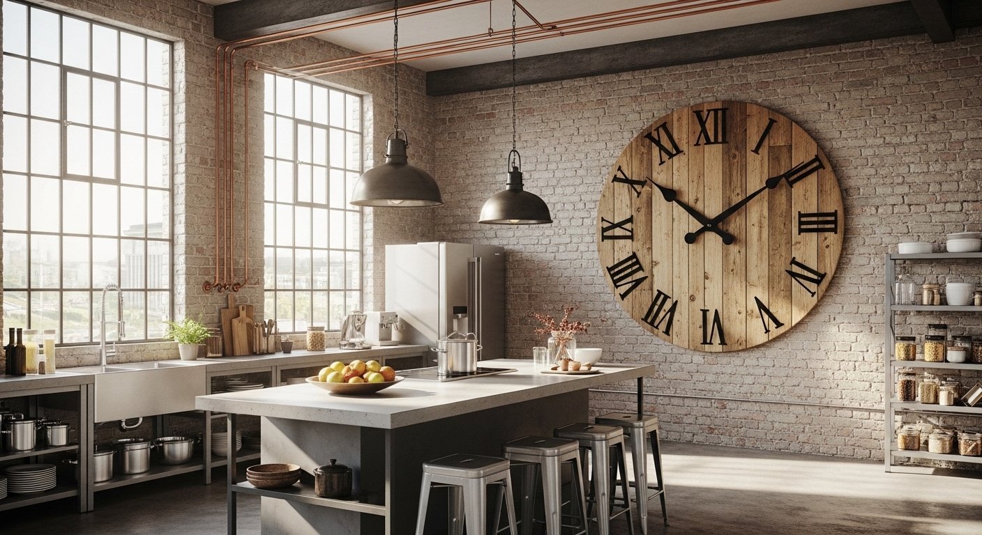 These clocks suit loft apartments, open-plan kitchens, modern offices, and industrial-inspired spaces.